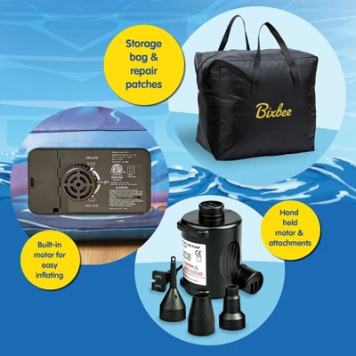 “Whether you have buccaneers swabbing the decks or youâre in need of lodgings for stowaways, the Bixbee Buccaneer Pirate Ship: Inflatable Mattress & Playspace is what the captain ordered! The multifunctional Buccaneer Pirate Ship Playspace will keep your heartiesâ imaginations ignited during playtime and as an inflatable mattress, will help them rest easy on the open seas of dreamland.The detailed story-book graphics will have the mateyâs reciting the Pirateâs Code and heading out on adventures through Bixbeeâs Pirate Island. Mapped out on the shipâs deck, your pirates can head to the Parrot Shoppe to collect a new pet parrot or down to the Treasure Chest Wood Shoppe for a new treasure chest to hold all the goodies you will find. The fearless seadogs will use the inflatable toy shipâs wheel and sword to navigate Alligator Alley and befriend the sharks on Sharkâs Beach.As an inflatable mattress, keeping sleeping quarters for stowaways has never been easier. With an integrated motor in base and self-closing valves, your guests can rest easy. When your hearties are finally ready to drop anchor and rediscover their sea legs, the Buccaneer Pirate Ship includes a bag for easy storage.Arrr-ours of fun ahead!”