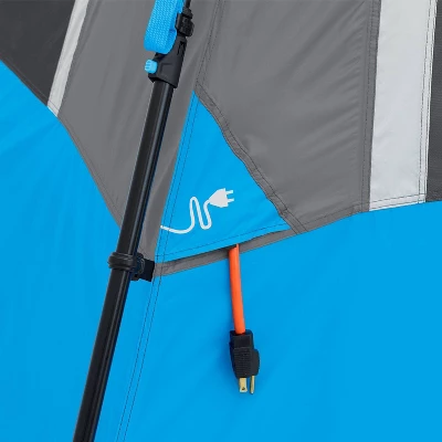 - WHAT’S IN THE BAG: Includes tent with pre-attached poles, rainfly with attached guylines, room dividers, battery compartment (4D batteries not included), tent stakes, and carry bag.