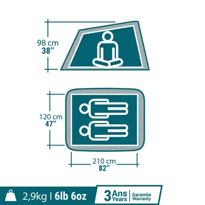 - Capacity: Sleeping area 47.2″ X 82.7 (2 persons)