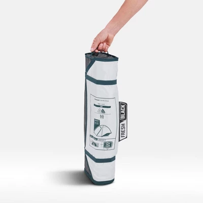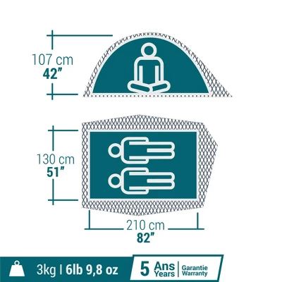 Cooler and darker for better sleep!Fresh & Black is a technology patented by Decathlon that allows us to reflect the sun’s rays and insulate from the light with specific materials.This reduces the sensation of heat in the tent and makes it darker.To get the most out of this technology, don’t forget to ventilate your tent at night!. This tent has a classic dome structure.All you have to do is fit the tent poles with the bedroom, followed by the upper tent pole, and finish by fitting the flysheet on the top. To strike the tent, the process is the same, but in reverse.