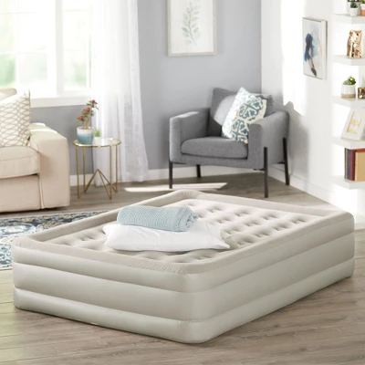 Now you can sleep in total comfort practically anywhere thanks to the supportive Insta Bed 18 Inch Queen Sized Airbed with Internal AC Pump.Perfect for guests or for traveling, this indoor air mattress features a built in AC air pump so all you need to do is take it out of the handy carry bag, flip a switch, and go from hard floor to soft, luxurious comfort in a matter of seconds. The raised surface makes getting in and out of bed easy, while the soft suede top helps keep your bedding on the bed instead of on the floor.Sleep easy and rest assured on top of quality air mattress designed with comfort and support in mind the Insta Bed 18 Inch Queen Sized Airbed with Internal AC Pump.