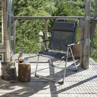 The Lafuma Alu Cham XL Folding Camping Patio Mesh Sling Chair is an exceptional way to provide yourself with creature comfort anywhere your lifestyle takes you.Supported by a rustproof aluminum alloy frame, this chair will keep you upright. Adjust the angle of the backrest to your preference of 5 positions and enjoy the extra-wide seat for plenty of wiggle room. Resin armrests and a sling fabric provide support, as well as comfort, to the design ideal for long afternoons lounging underneath your favorite shade tree. A mesh weave made from synthetic Batyline fabric promotes airflow and quick-drying. The fabric is also resistant to UV-fading and tearing, making it hardy enough to stay outdoors all season long.The outdoor patio chairs each fold up compact, making them easy to stack, carry, and store anywhere you need. At your kid’s playoffs, that outdoor concert, or just Sunday mornings on the front porch, the Lafuma Alu Cham Folding Camping Patio Mesh Sling Chair.