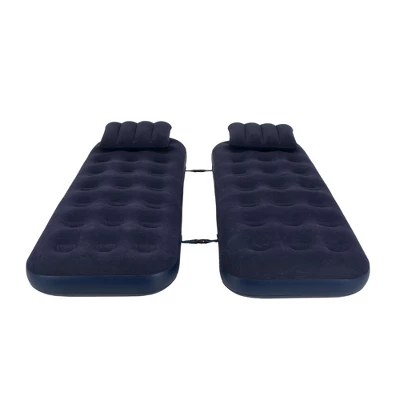 This 3 in 1 air bed functions as single bed, double bed and high-rise bedPerfect for camping, relaxing at home or for sleepoversSturdy vinyl coil beam construction Waterproof flocked top prevents sheets from slipping, provides soft velvety feel and adds to comfortComes with 2 pillows Super safety valve helps rapid inflation and deflationIncludes repair patchAge: 14+Dimensions: 9″H x 29”W x 75”L Material(s): heavy duty vinyl