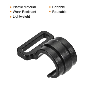 What is this?The tent pole clip mainly functions for fixing. It has various applications such as outdoor camping, hiking, boating, fishing, gardening, etc. Widely used for fixing your tent, canopy, awning, rain tarp, canvas, tarpaulin, covers, and more.What to get? Color: Black;Material: Plastic;Hole Diameter: 19mm / 0.75″;Overall Size:40mmx26mmx26mm / 1.57″x1.02″x1.02″(L*W*H);Package Content: 10 x Tent Pole Clips;Are there any advantages of the product? Made of durable plastic material, wear-resistant, lightweight, portable, and reusable. How to use it? Align the c-clip to the pole and clamp it and the tent straps can be passed through the hole in the clip. What to notice? Please pay attention to the proper size of the tent fixing clip.